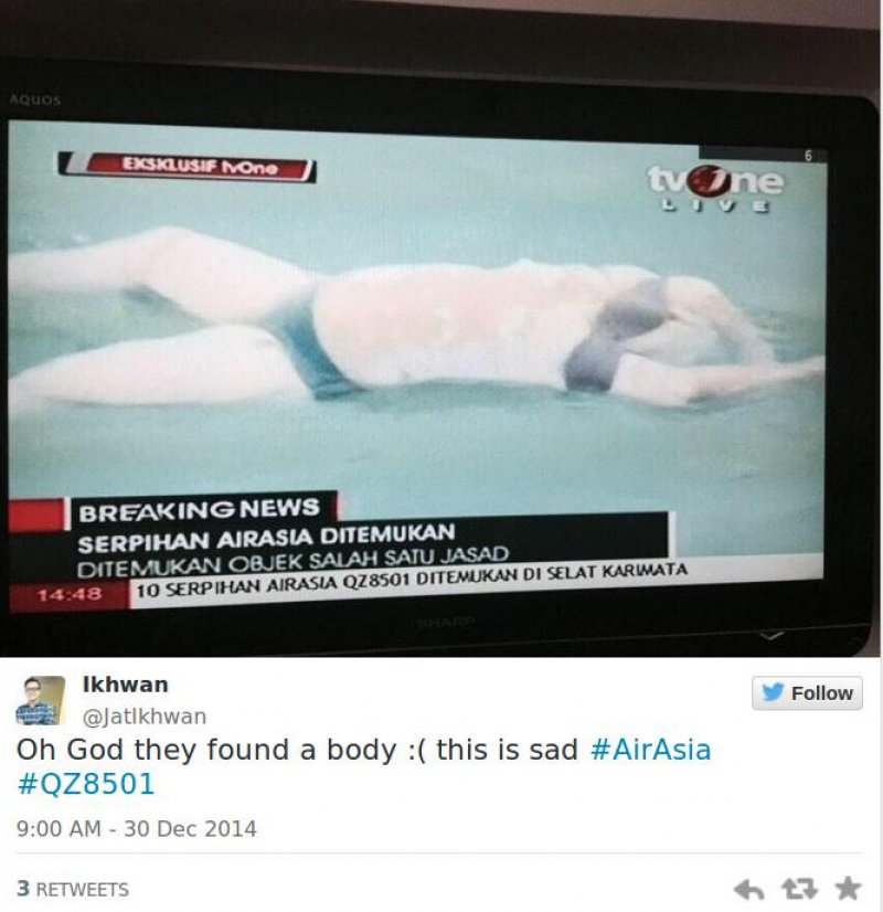 Kako javlja Straits Times, posada aviona koja je uočila ostatke kazala je kako su zapazili i prtljagu, prsluke za spašavanje. Glasnogovornik zapovjednika mornarice kazao je kako su nedaleko od ostataka zapazili i tijela kako plutaju na površini mora.