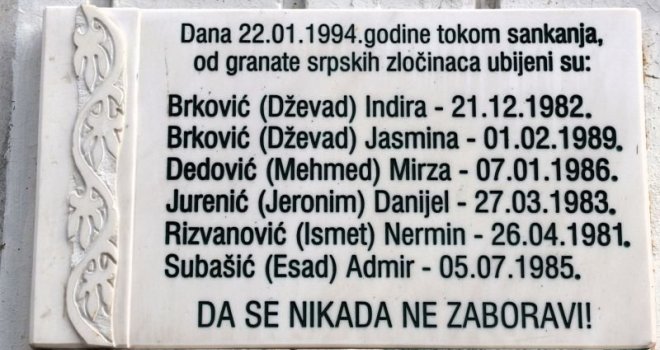 Na današnji dan 1994. godine ubijeni su: Indira Brković (rođena 21.12.1982. godine), Jasmina Brković (01.02.1989.), Mirza Dedović (07.01.1986.), Danijel Jurenić (27.03.1983.), Nermin Rizvanović (26.04.1981.) i Admir Subašić (05.07.1985.).