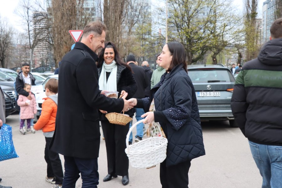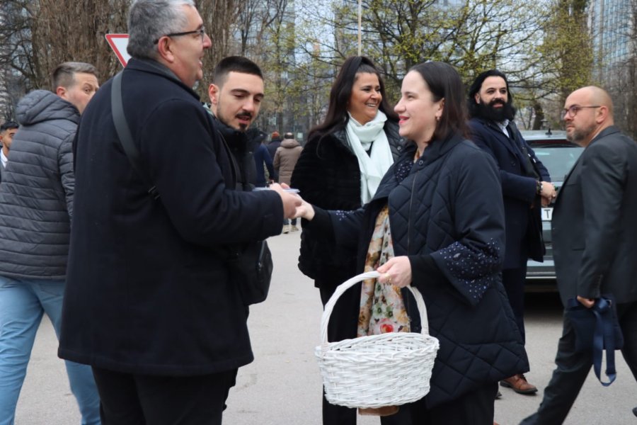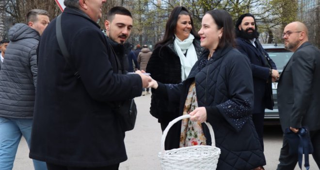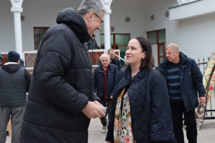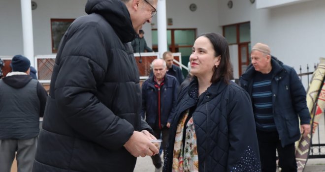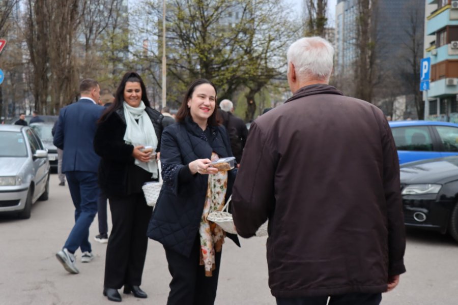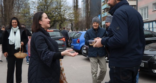 Načelnica Općine Novo Sarajevo Benjamina Karić jutros je, nakon bajram-namaza, u haremu džamije Grbavica II podijelila radost Bajrama sa sugrađanima, počastivši ih tradicionalnim bajramskim baklavama.