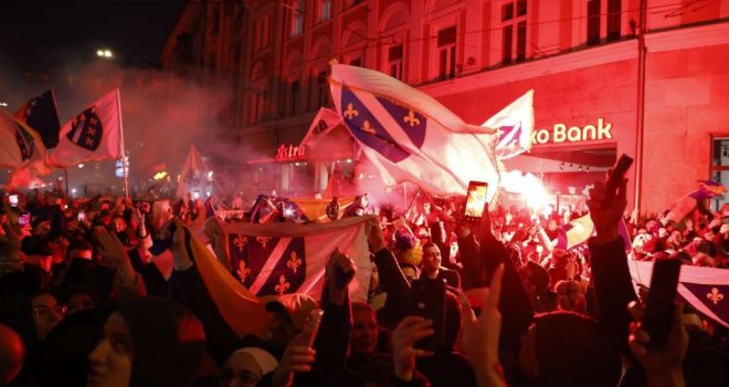 Desetine hiljada ljudi okupilo se noćas u Sarajevu u Titovoj ulici, ispred Vječne vatre, gdje su dočekali nogometaše BiH sa kojim su proslavili plasman na Svjetsko prvenstvo.