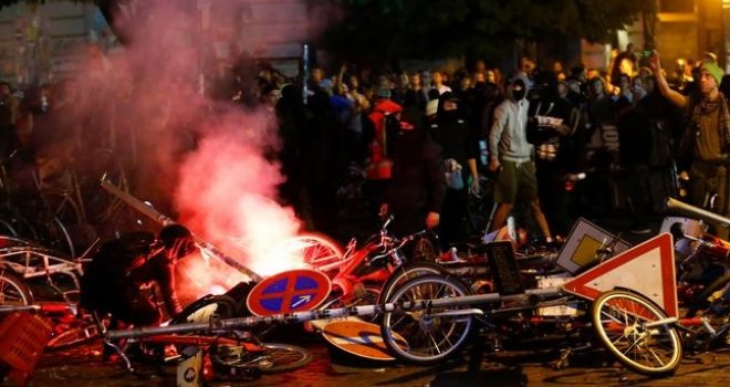 U petak uveče je, prema navodima policije, oko 1.500 njih pustošilo Hamburg, iza su ostajali spaljeni automobili i razbijeni izlozi. Policija je iza ponoći opkolila četvrt Šancenfirtel u kojoj se nalazi čuveni ljevičarski alternativni centar Crvena flora. Bilans je 197 povređenih policajaca i preko stotinu uhapšenih osoba.
