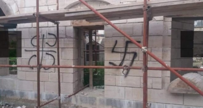 Na vjerskom objektu u izgradnji, banjalučkoj džamiji Arnaudiji, za sada nepoznata osoba ispisala je četiri slova "S" te nacrtala kukasti krst, saznaje Fena.
