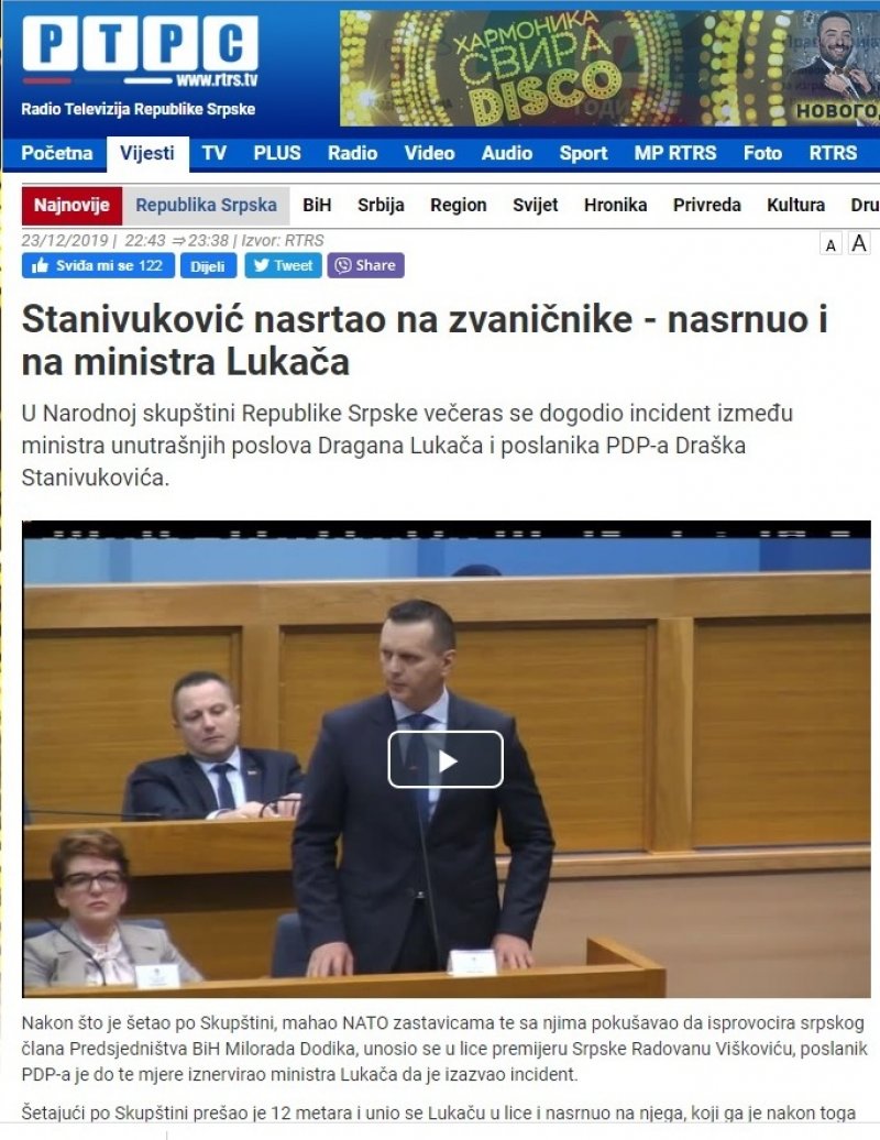 "Nakon što je šetao po Skupštini, mahao NATO zastavicama te sa njima pokušavao da isprovocira srpskog člana Predsjedništva BiH Milorada Dodika, unosio se u lice premijeru Srpske Radovanu Viškoviću, poslanik PDP-a je do te mjere iznervirao ministra Lukača da je izazvao incident.
