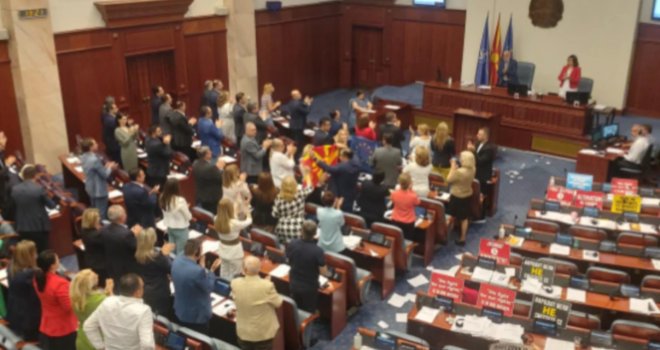 Poslanici opozicione VMRO-DPMNE koji su bili protiv francuskog prijedloga napustili su Skupštinu prije glasanja i nakon rasprave koja je u napetoj atmosferi trajala skoro tri dana.