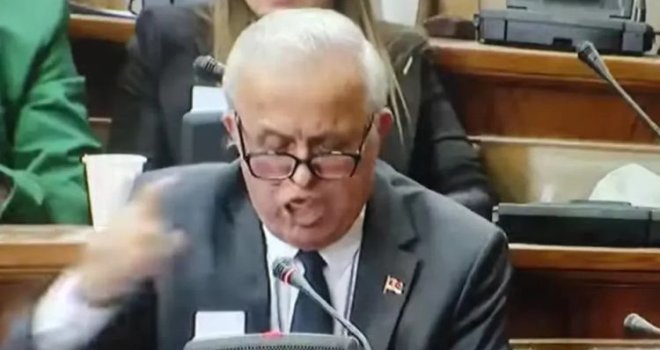 U borbi da nadjača buku, u nadahnutom govoru o studentima, obrazovanju i “obojenoj revoluciji”, zastupnik Vučićevog SNS-a, inače profesor u penziji, Marko Atlagić, u jednom trenutku je zamalo ostao bez zubne proteze.