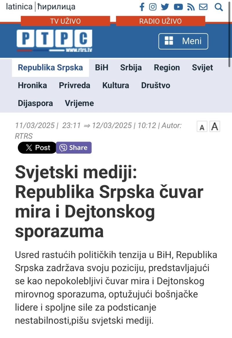 Vezano za izvještaj RTRS-a pod naslovom "Svjetski mediji: Republika Srpska čuvar mira i Dejtonskog sporazuma" u kom se ovaj entitetski javni emiter poziva na tekstove navodno njemačkih medija "Neue Berliner Zeitung" i "Frankfurter Handelsblatt", Ambasada Bosne i Hercegovine u Berlinu obavještava javnost da takve medijske kuće ne postoje.