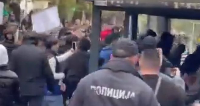 Policija pokušava da smiri situaciju i govori okupljenima da se u zgradi nalaze i djeca, ali su im oni odgovorili kako o njihovoj djeci niko nije brinuo.
