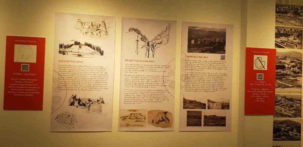 Izložba je krajnje savremeno koncipirana i osim klasične postavke zidnih i vitrinskih eksponata sadrži i veliki virtuelan prostor dostupan preko QR kodova, što je čini posebno prijemčivom za populaciju mladih. Postavka prikazuje detaljno inicijativu i istorijat ovog najvećeg mostarskog, ali i Bogdanovićevog spomenika, kao i njegov život tokom 1960-tih, 1970-tih i 1980-tih, onako kako ga je vjernim očima i perom pratio mostarski nedjeljni list "Sloboda".