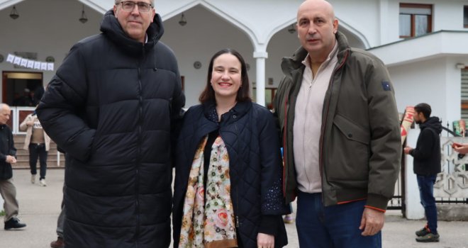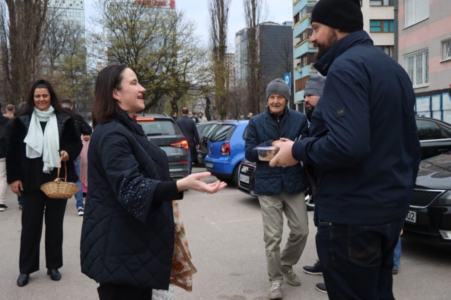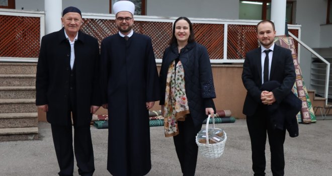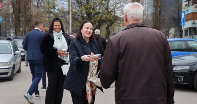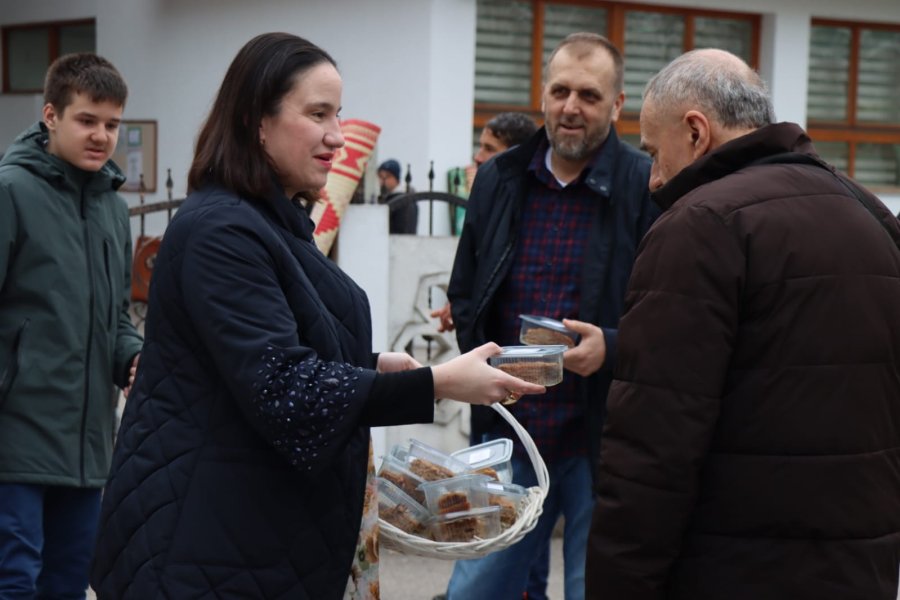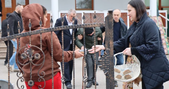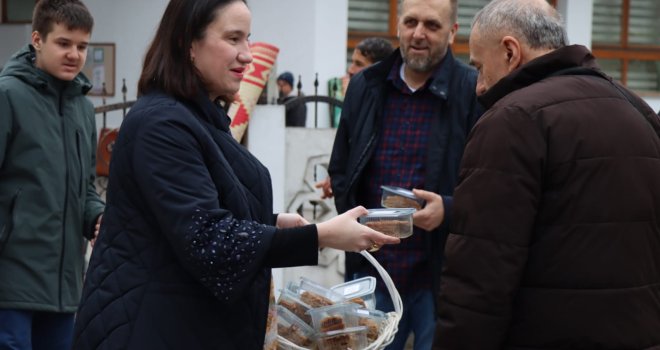 Načelnica Općine Novo Sarajevo Benjamina Karić jutros je, nakon bajram-namaza, u haremu džamije Grbavica II podijelila radost Bajrama sa sugrađanima, počastivši ih tradicionalnim bajramskim baklavama.