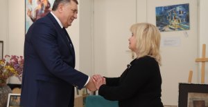 Dodik u Trebinju dobio portret sa skandaloznim det... Dodik je obišao i Artem galeriju i tu je dobio poklon. Vlasnica Svetlana Majhofer uručila je Dodiku njegov portret sa skandaloznim detaljem