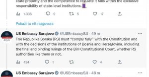 Američka ambasada: BiH je titular državne imovine,... Ističu da se Republika Srpska mora u potpunosti pridržavati Ustava i odluka institucija Bosne i Hercegovine, uključujući konačne i obavezujuće presude Ustavnog suda BiH, sviđale se one vlastima RS-a ili ne